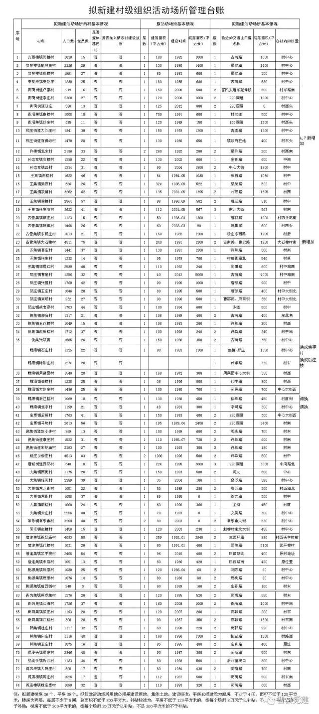 拟新建村级组织活动场所管理台账