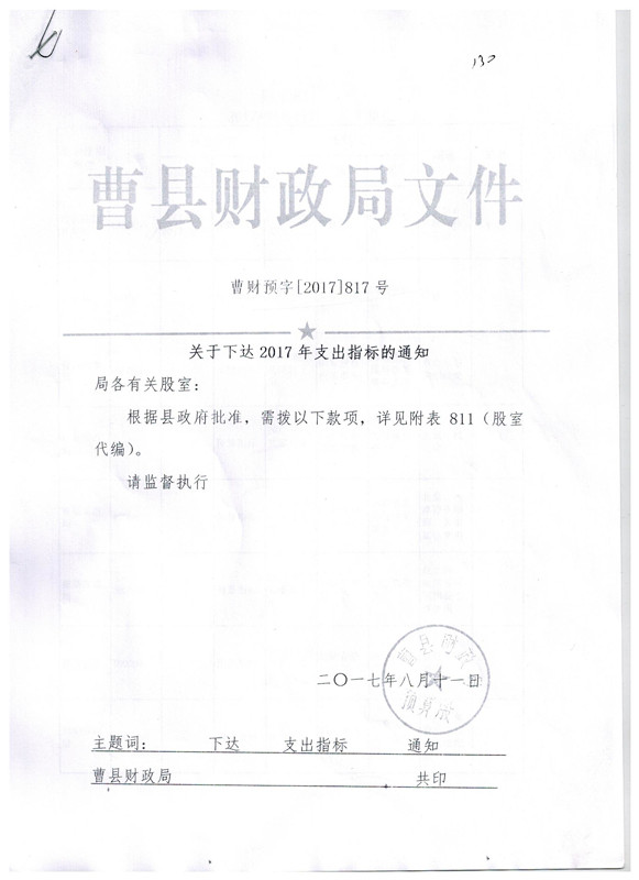 曹财预字【2017】817号